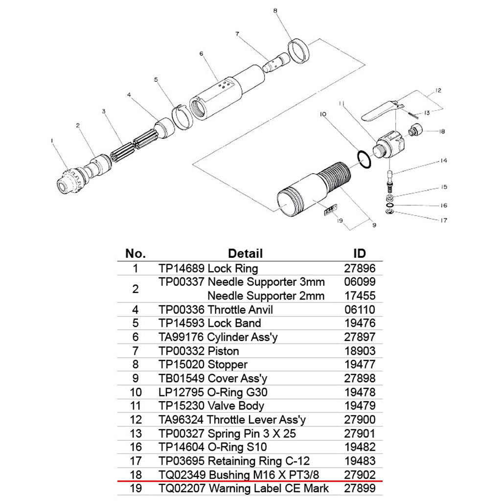 อะไหล่แส้ยิงสนิม NITTO JT-20 ; (18) Bushing M16 X PT3/8 ยี่ห้อ NITTO JT-20 PN: TQ02349